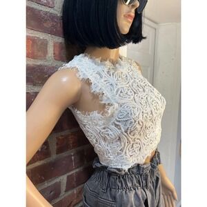 Design Lab Lord & Taylor Sleeveless Crochet Lace Crop Top