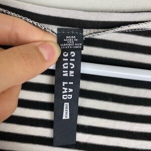 Design Lab Lord & Taylor Striped Asymmetrical Black and White Short Sleeve