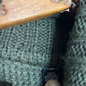 Design Lab Lord & Taylor Turtle Neck Knitted Ribbed Trim Pocho Sweater Green XS