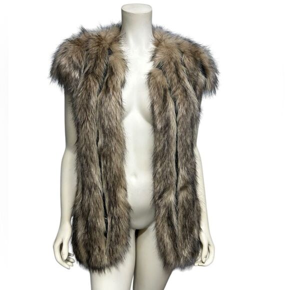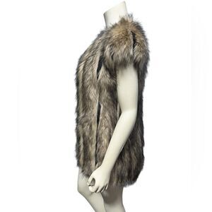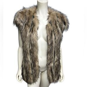 Design Lab Lord & Taylor Faux Fur Vest Tan and Brown Lined Fake Fur Vest Small