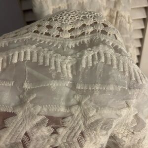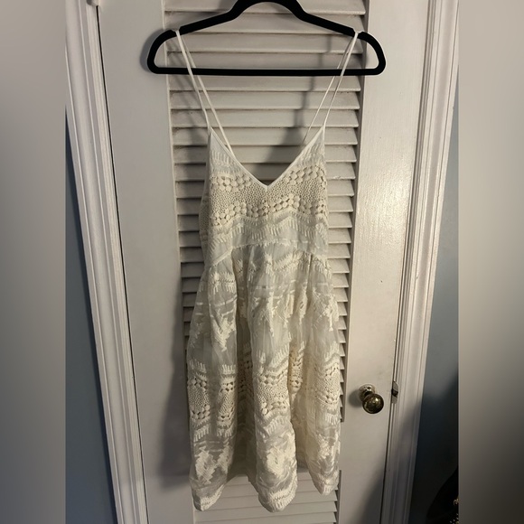 This gorgeous white mini dress is perfect for the warmer months! Made from sheer and lace material, it is fun and flirty, and perfect for any occasion! New with Tags!