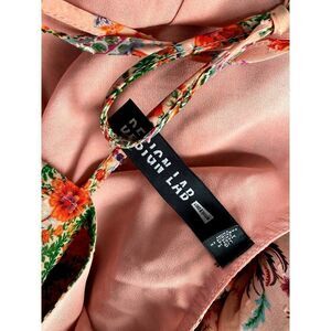 Design Lab Peach Floral Shortie Romper Sz L Lined Long Bell Sleeves Feminine NEW