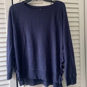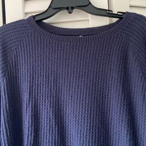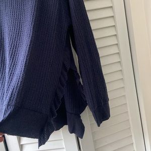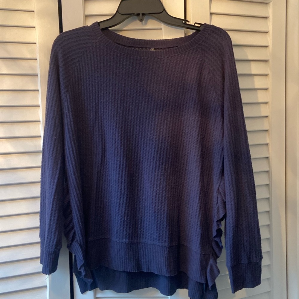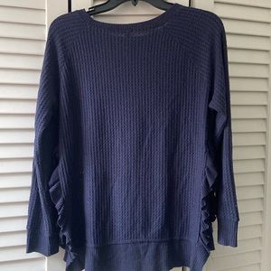Design Lab Blue Long-Sleeved Crew Neck Sweater, Size M, Light, Ruffles with Opening on Sides, Waffle Pattern