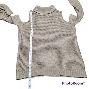 Design Lab Tan Brown Loose Knit Cold Shoulder Turtleneck Sweater