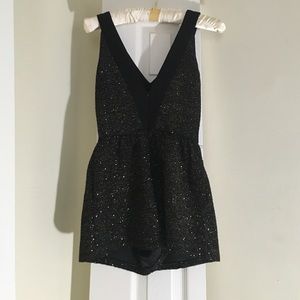 Black and gold sequined romper, v cut on front and back. Extremely cute and comfortable, great for a night out!