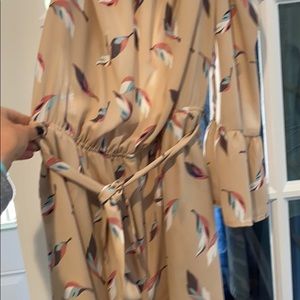 Off the shoulder Design Lab romper. Stretchy waistband. Cute flowy sleeves. Has pockets and a tie. Great condition