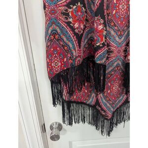 Design Lab Lord & Taylor Kimono Wrap women's size pink paisley fringe coverup