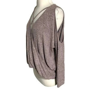 Design Labs Lord & Taylor M sexy pink surplice cold shoulder top