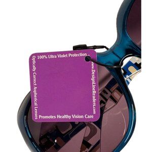 Stay in style with these fashionable reading sunglasses from Design Line. These elegant bifocal sun readers feature a blue frame with a geometric print on the temples, a +2.50 strength, and 100% ultra violet protection.