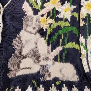 Design Options Easter Egg Cardigan Sweater Large Furry Bunny Rabbit Fence Vtg