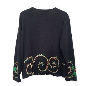 Design Options by Philip and Jane Gordon Womens Beaded Sequin Holly Berry Holiday Cardigan Sweater Sz XL