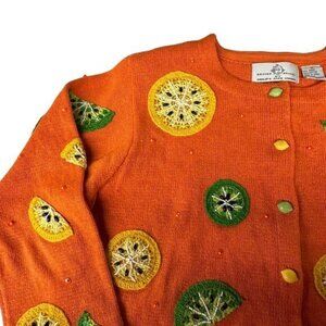 Design Options M Citrus Cardigan Sweater Orange Lime Lemon Eye Pop Crochet Beaded Art to Wear 80's