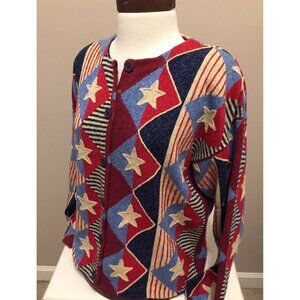 Design Options Philip Jane Gordon Sweater L Cardigan Stars Stripe Patriotic (HH8