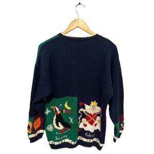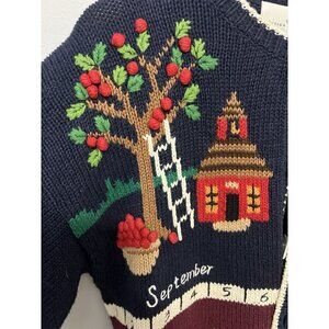 Design Options Seasons Calendar Knit Sweater Cardigan Black Size L Embroidered