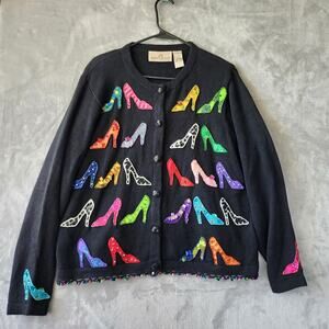 Design Options Sweater Womens XL Cardigan Embroidered Beaded Shoes Janes Closet