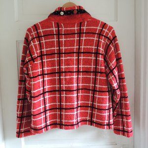Design Options Vintage Red & White Windowpane Embellished Cardigan Jacket M