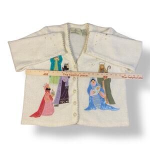 Design Options by Philip and Jane Gordon Vintage White Nativity Cardigan Sweater, beaded, embroidered and sequined Size XL