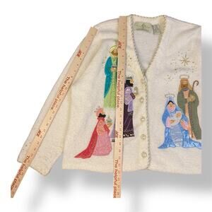 Design Options by Philip and Jane Gordon White Nativity Cardigan Sweater Size XL