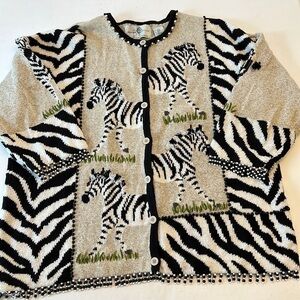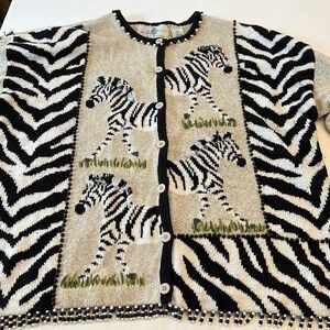 Here is a Design Options by Phillip & Jane Gordon Vintage Beaded Zebra Sweater Size XL in EUC, please note initials on tag