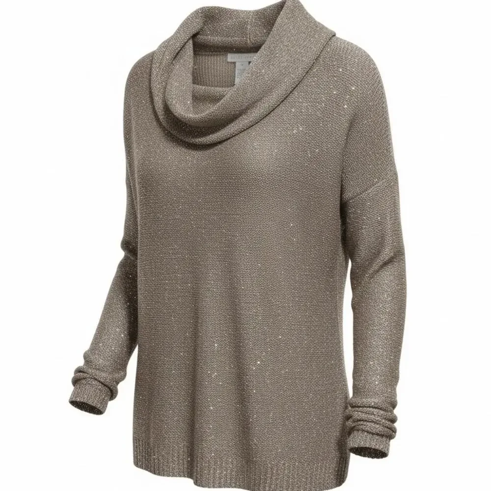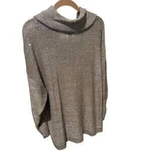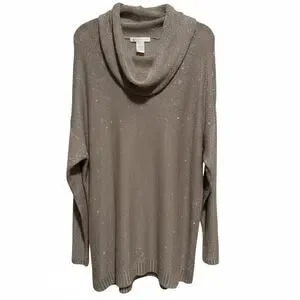 Design History, plus size, 2X, taupe knit, sequins, cowl neck, tunic sweater, lightweight, sparkly, casual chic, evening casual, layering top