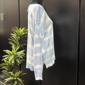 Design Story Knit Horizontal tie-dye stripe pullover sweater,slit sides