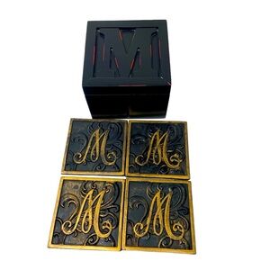 Design Styles | (4) Custom Monogram Coasters with Case | Black and Bronze Script