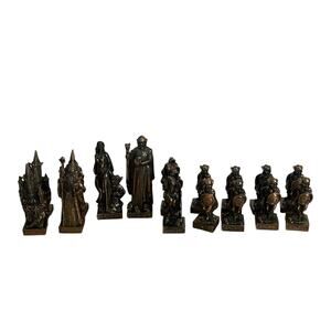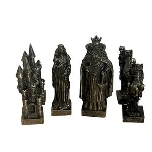 Complete Mystical Legends Gremlins, goblins, trolls chess set. Silver and Copper resin composite. appox 4" PIECES ONLY NO GAME BOARD Excellent condition no flaws