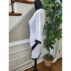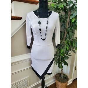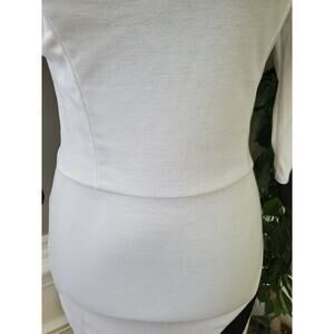 Design Women's White Polyester Round Neck Long Sleeve Knee Length Dress Size M