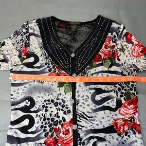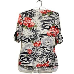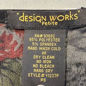 Design Works Petite Blouse Womens Size Small Petite Red Black Rose Animal Print