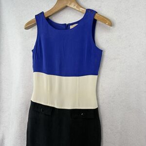 Design by Pat Argenti 100% Silk Colorblock Sleeveless Shift Dress Sz 4 Blue, Black, and White