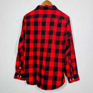 Design in Italy Flannel Shirt Button Down Lumberjack Red Black Checker - M