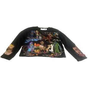 Design options Christmas Kitschy Embroidered Beaded Sweater Vintage Car Dog Sz S