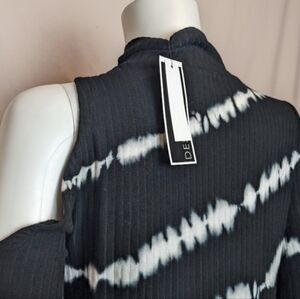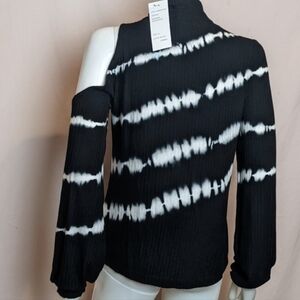 Design365 Black and White Tie Dye Long Sleeve Cut Out Shoulder Top size Medium