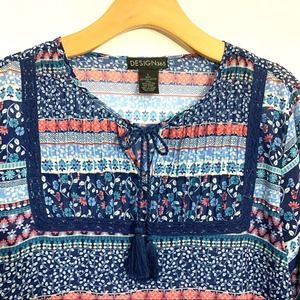 Design365 Bohemian Tunic Blouse floral flowy casual top Saksoff5th size L