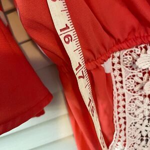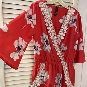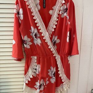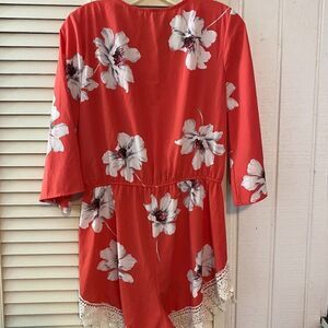 Design Lab tangerine White Flower Pattern White Lace Fringe Romper