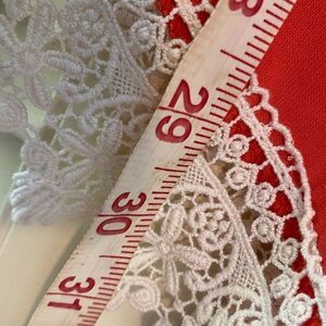 Light flowing fabric with lace trim detail.