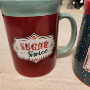 Enjoy your favorite beverages with this festive mug set. Featuring vibrant red and teal colors, these mugs are perfect for adding a touch of holiday cheer to your dining experience. 5x3.5