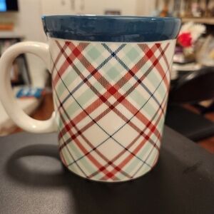 Large Festive plaid mug with a snowflake design. Perfect for winter drinks. 5x4. Like new condition.
