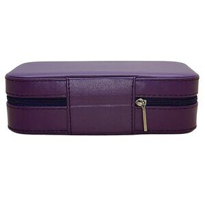 Compact travel jewelry organizer with zippered closure, multiple compartments, and soft interior for rings, earrings, and necklaces. Stylish and durable design in dark purple.