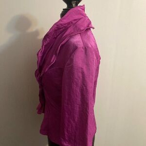 Design Today's Vintage Magenta Pink ruffle collard 3/4 sleeves blazer, size S