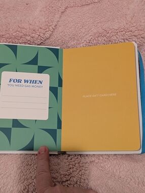Compact gift card book featuring crisp white cover and printed black logo. Simple monochrome label with barcode and product details. Sleek and minimal design for easy gifting. Add the gift cards of your choice. I bought this for my daughter before she headed to college in August, but forgot where I put it. Just found it. Oops.