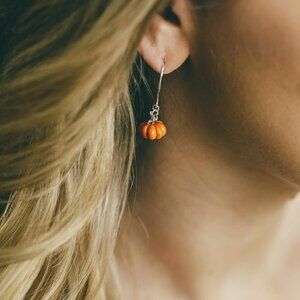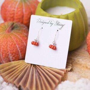 Designed By Stacey Handmade Orange Pumpkin Earrings, Silver Plated Ear Wire Dang