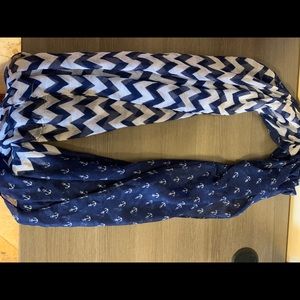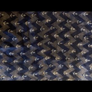 Has anchors on one side and chevron on the other. Navy Blue and White. Always one of my favorites. When it is worn both patterns blend well together and it’s not as busy as you may think! In perfect condition.