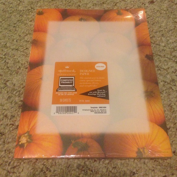 50 sheets of pumpkin border paper 6 packs computer friendly! Great for use with Microsoft greetings workshop software. Hallmark Connections brand Acid-Free. Can be used for Laser or ink jet printers !