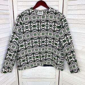 Designed by BLING Aztec Print Dobby Weave Boho Jacket Green White Black Small