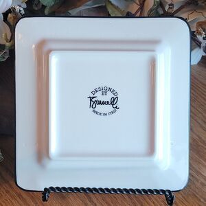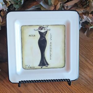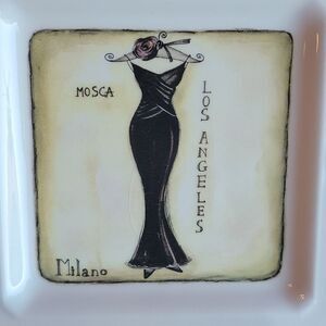 Vintage Made in Italy small 71/2"x71/2" square plate by Brunelli. Designer plates list cities that are centers of fashion. This one lists Mosca, Los Angeles, and Milano. There is crazing which is not uncommon with vintage ceramic. I believe these to be quite rare.