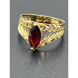 Designer 10K Yellow Gold Marquise Red Prong Garnet Ring Vintage Estate Sz 7.25