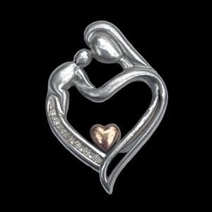 Designer 14k Gold and Sterling Silver Diamond Family Pendant