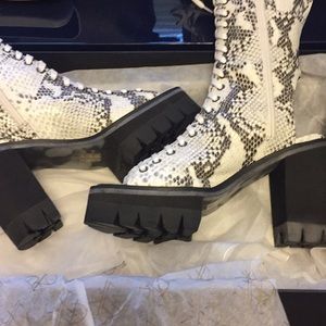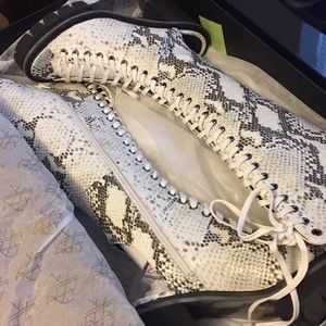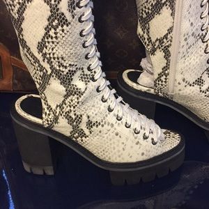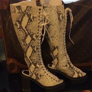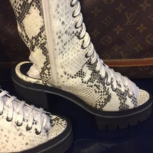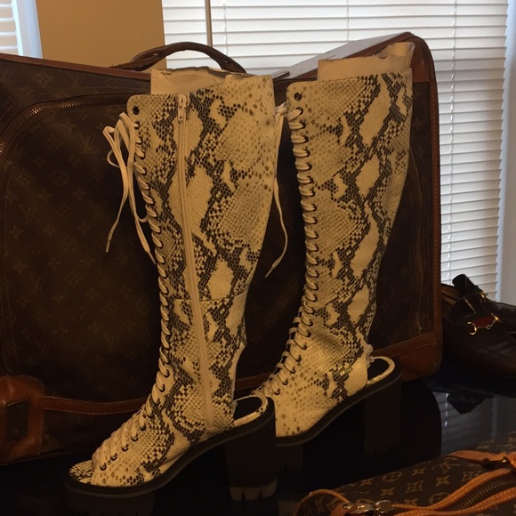 Absolutely fly YES tie up sandals,Snake Print calf length NEW with box and packaging..... this sandal is flabbergasting speechless an indescribable fly shoe.... Pair with shorts or dress a complimentary piece of The Catwalk