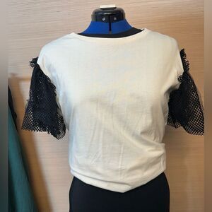100% cotton tee w/ layered lace puff sleeves